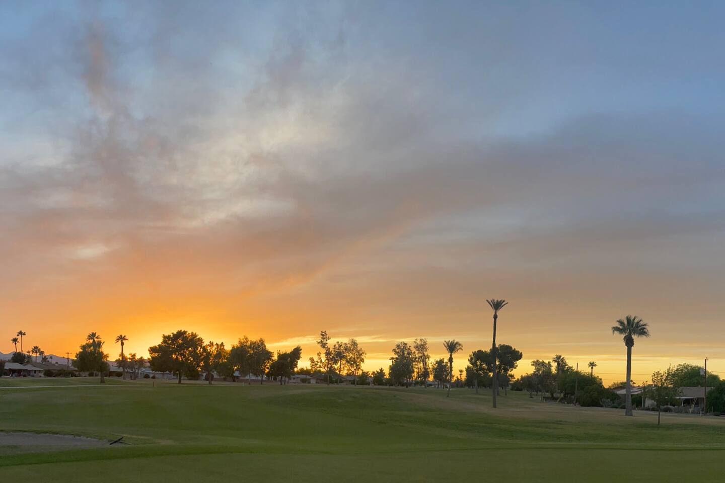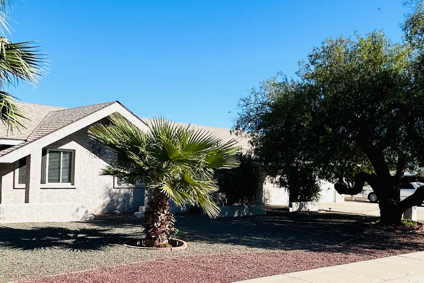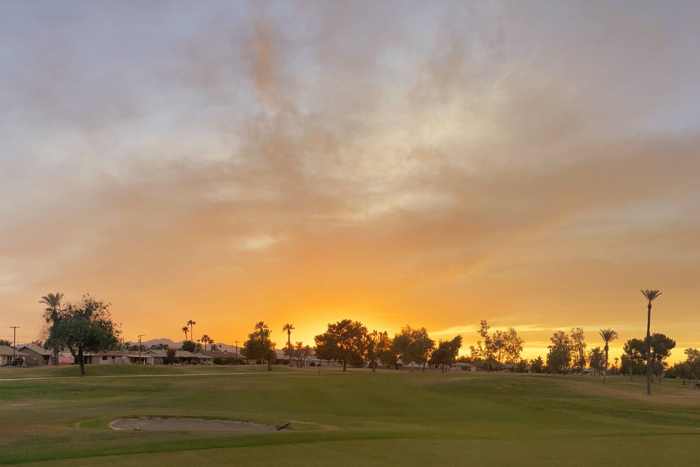 Only 12 minutes from State Farm Stadium & 15 minutes from P-83, this charming 3-bedroom, 2-bathroom home on Sun City South golf course, offers a perfect blend of comfort and elegance. The open floor plan is filled with natural light throughout the day. The kitchen features a large island perfect for hosting guests. Enjoy outdoor living on the covered patio, which opens directly onto the lush golf course. Perfect for out-of-town renters looking for a peaceful retreat in a vibrant community.