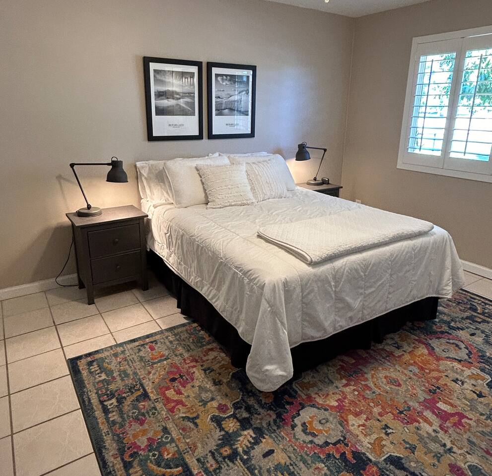55+ community. One booking member has to be 55+! Welcome to your serene single-story retreat located right on the golf course! This charming home is exclusively available to those 55 and older, ensuring a peaceful and mature community environment. With 3 spacious bedrooms and 2 bathrooms, this property offers both comfort and functionality. One bedroom includes a work station perfect for working at your home away from home. The backyard is your personal haven, opening up to breathtaking views of the golf course, perfect for relaxing or entertaining. Experience the blend of tranquility and luxury in this beautiful home tailored for your lifestyle. 3 Bedrooms & 2 Bathrooms Bedroom 1 - Queen Size Bed Bedroom 2 - Queen Size Bed Bedroom 3 / Office (Work Space) - Twin Bed Bathroom 1 - Ensuite to main bedroom. Recently updated and offers a stand up shower. Bathroom 2 - Bath/Shower Combo.